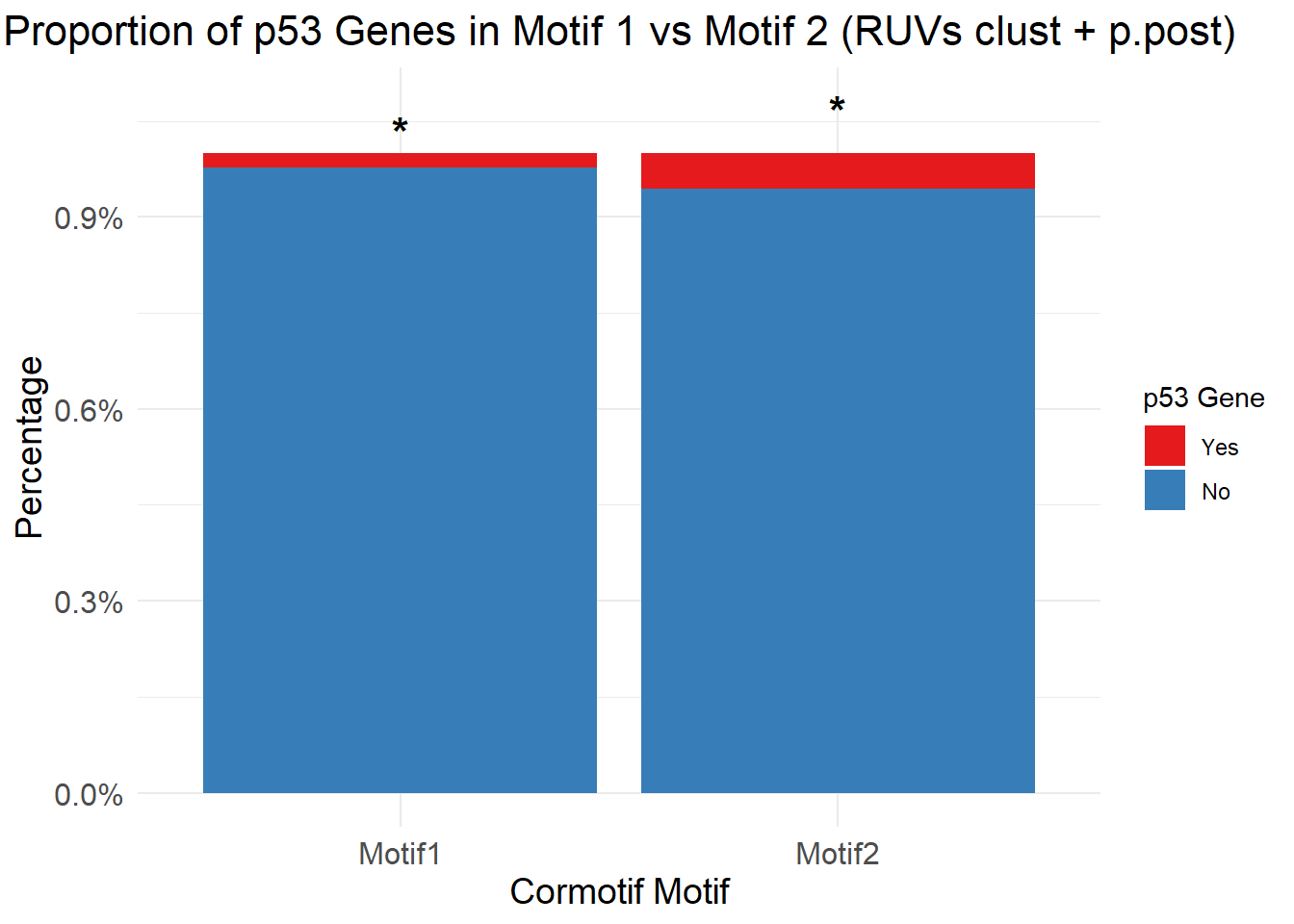 cat(sprintf("Motif1: %.2f%% p53 genes (%d/%d)\n", 100*prop_motif1_p53, in_motif1_p53, length(final_genes_1_RUV)))