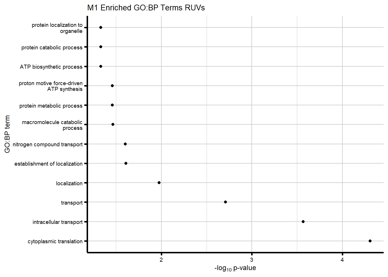 ggtitle("M2 Enriched GO:BP Terms RUVs")+